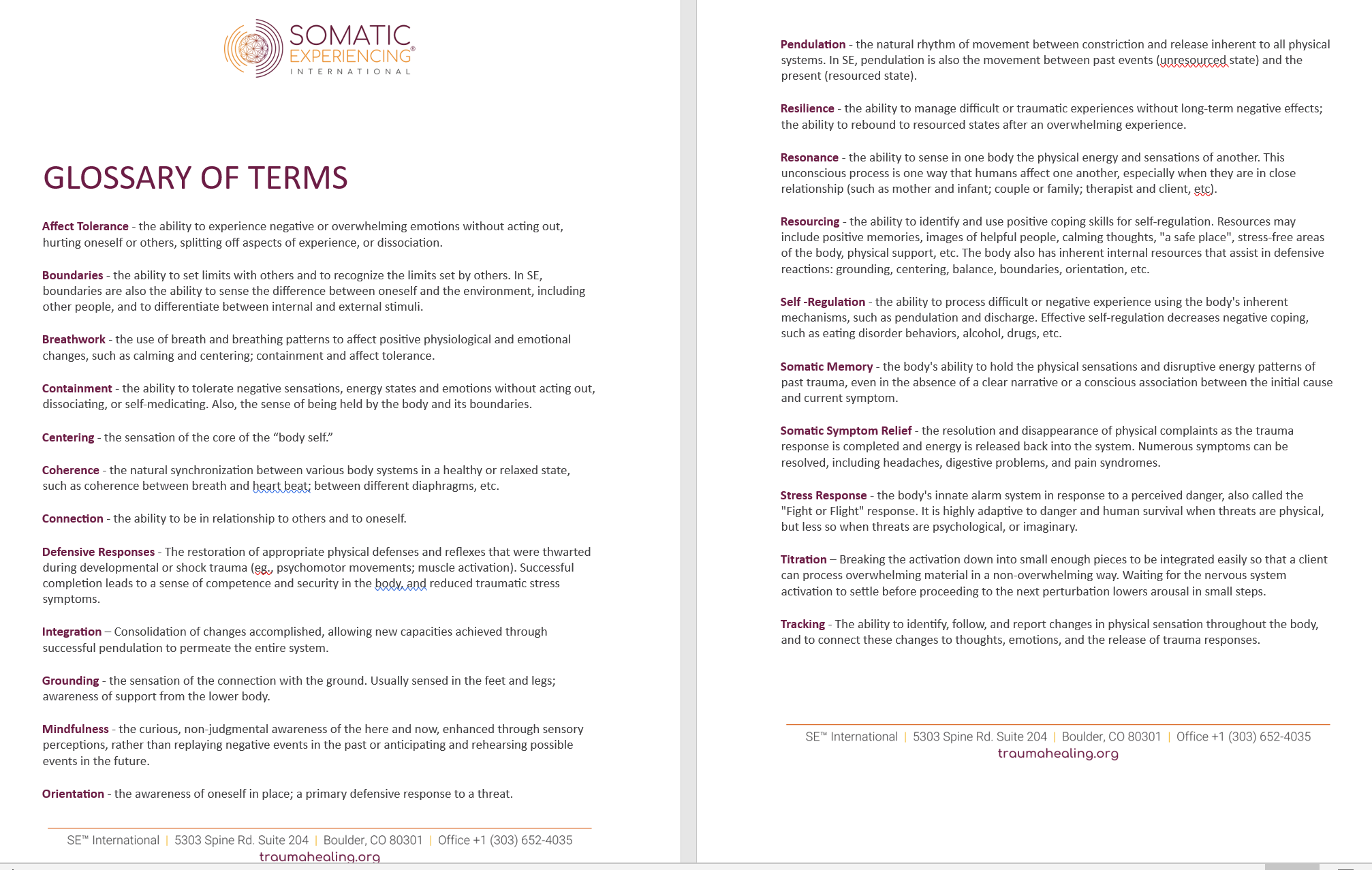 Somatic Experiencing International, Professional training organization and directory of practitioners