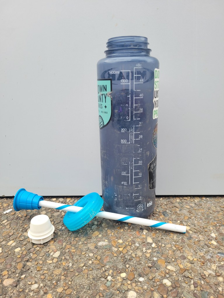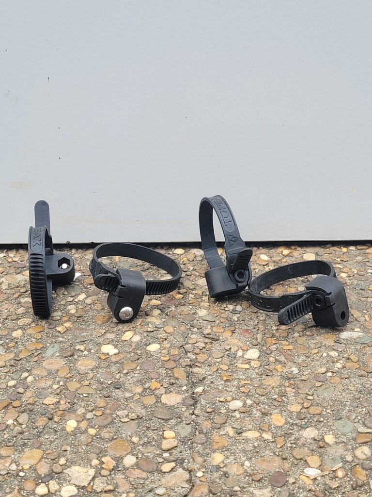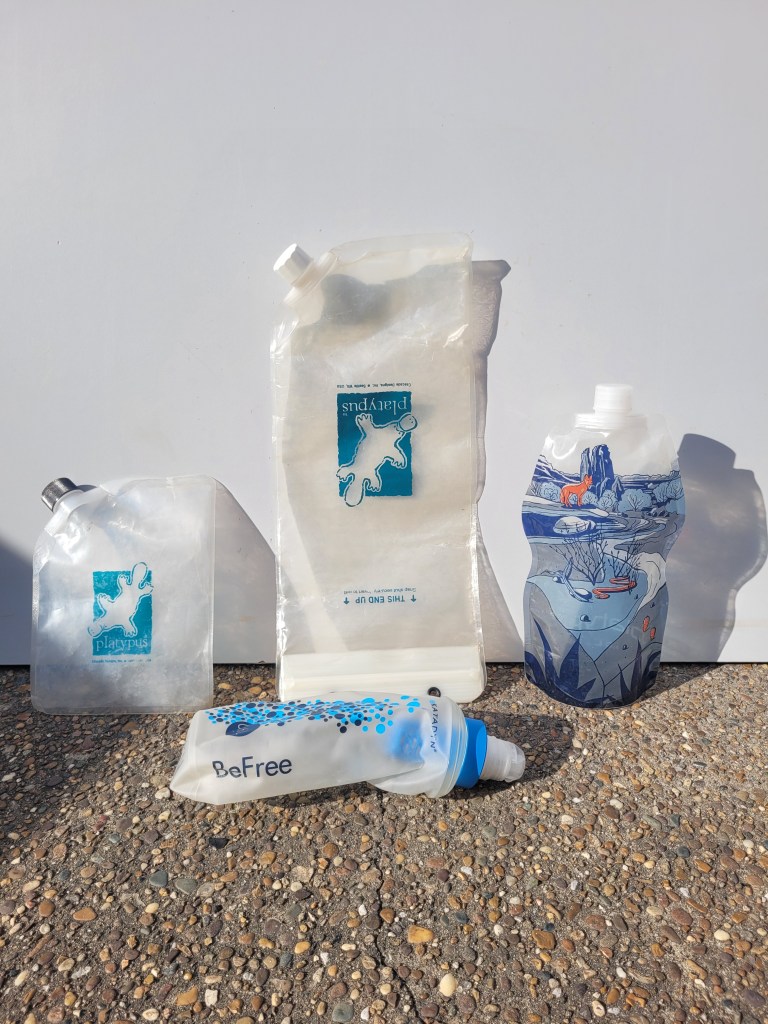 4. Nalgene with hose adaptor, bite valve, Salsa Anywhere mount, Viole strap, and fork mounts.