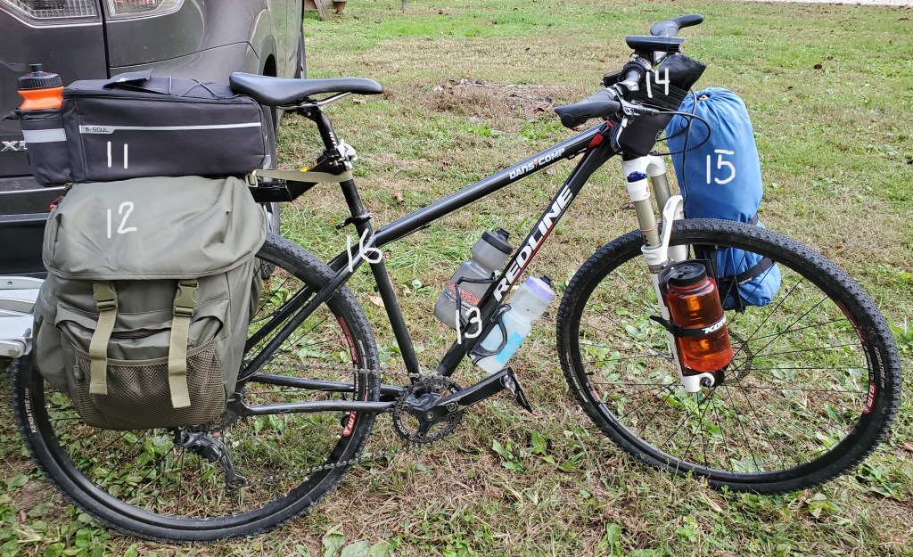 - The bike you have will do. Some of the routes are more off road than others but consideration of gearing + 20-40 lbs of gear on your bike is a more important factor for determining the highest level of enjoyment. Don’t feel pressure to buy the perfect bag set up just yet, it’s a process of figuring out what works best for each situation. That’s how I ended up with enough bags and gear to outfit three bikes at the same time! Benefit from my years of experience and consider using bags from my local gear library!